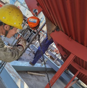 當用冠航手拉葫蘆吊裝分離器的高度達到200-500mm時,需要檢查分離器的平穩性和綁扎的牢固性,以及重物的重心是否有偏高情況。吊完分離器后,還可以摘下手拉葫蘆參與到其他零部件的吊裝工作中。